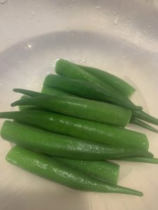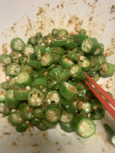 オクラの胡麻醤油を作ります。