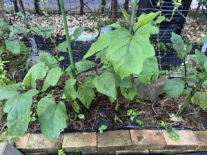 茄子の苗が、虫にやられて
