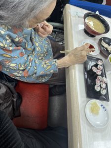 山芋巻き2皿、お魚天ぷら、あら汁、