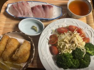 (ぶりのお刺身、鯵フライ)