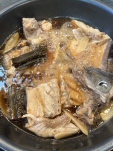 ヒラスのアラの煮物。